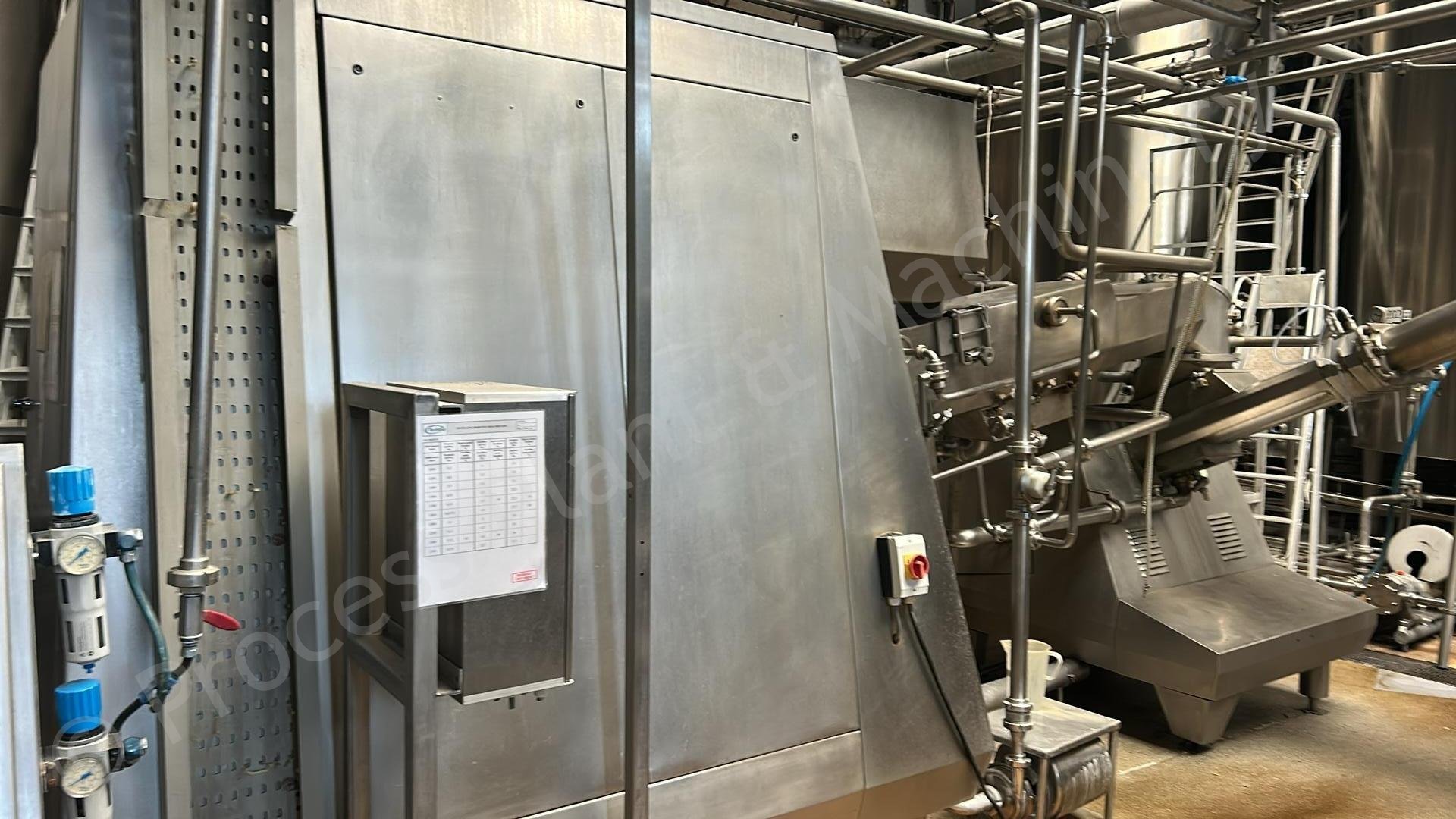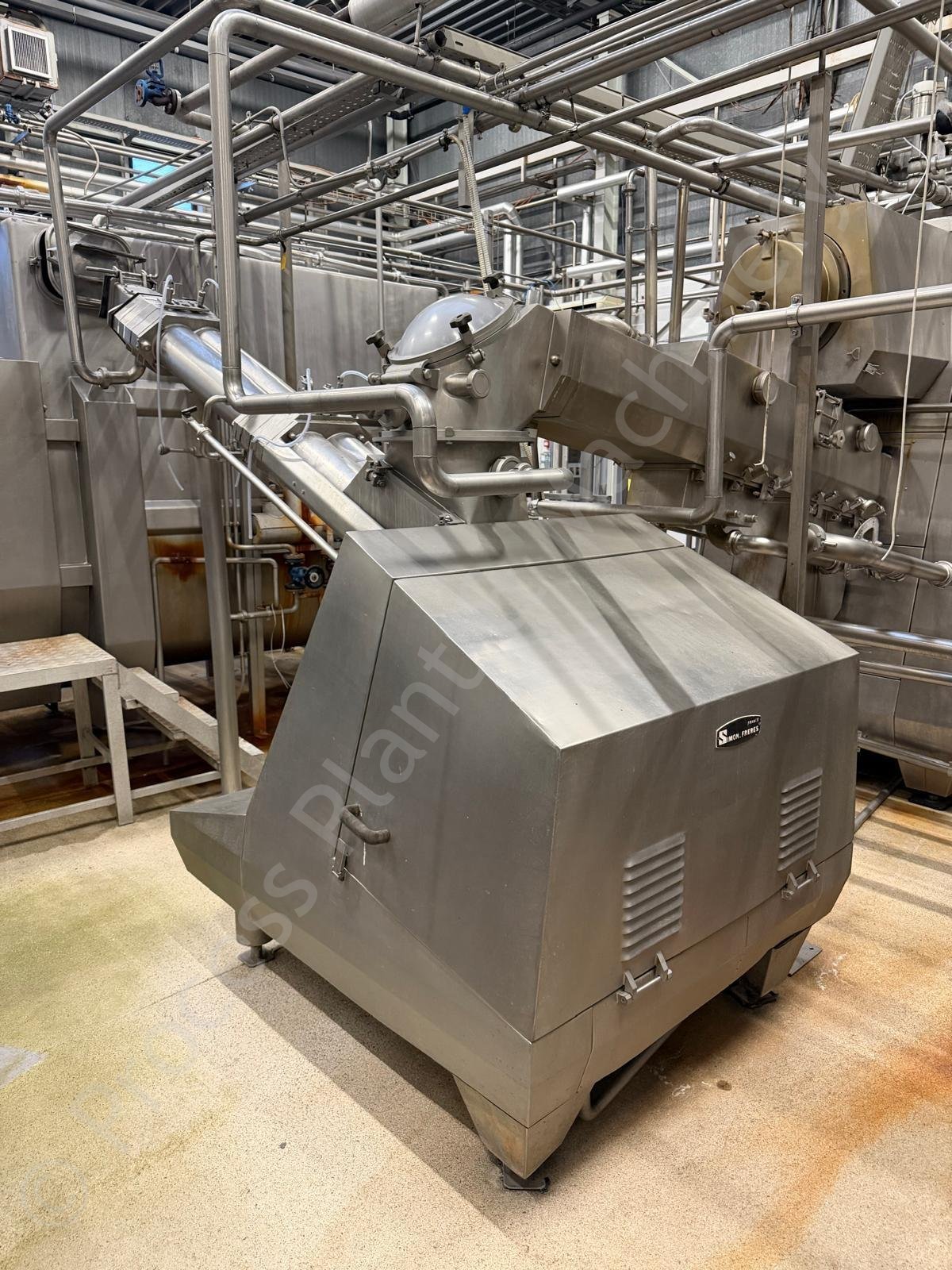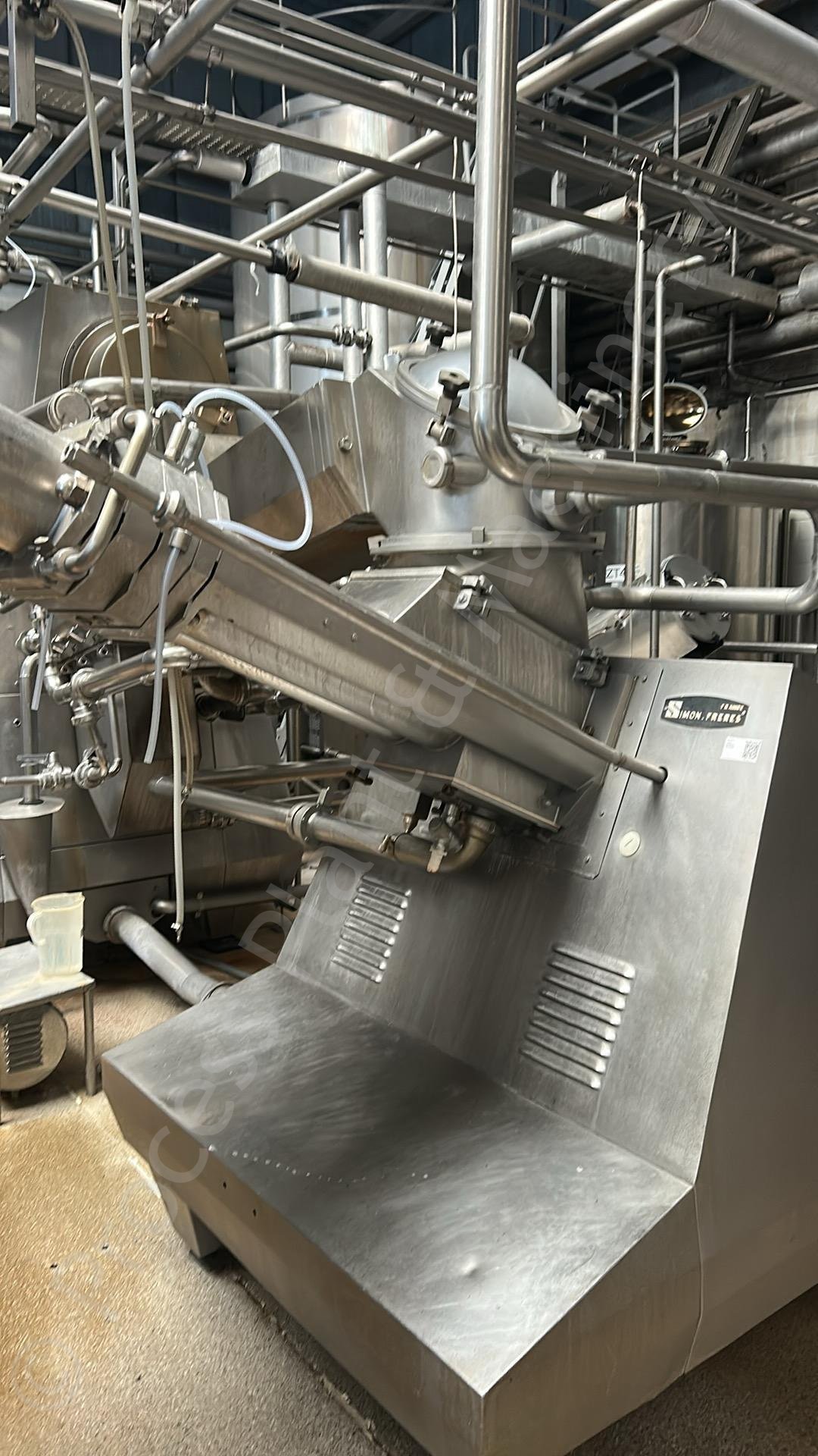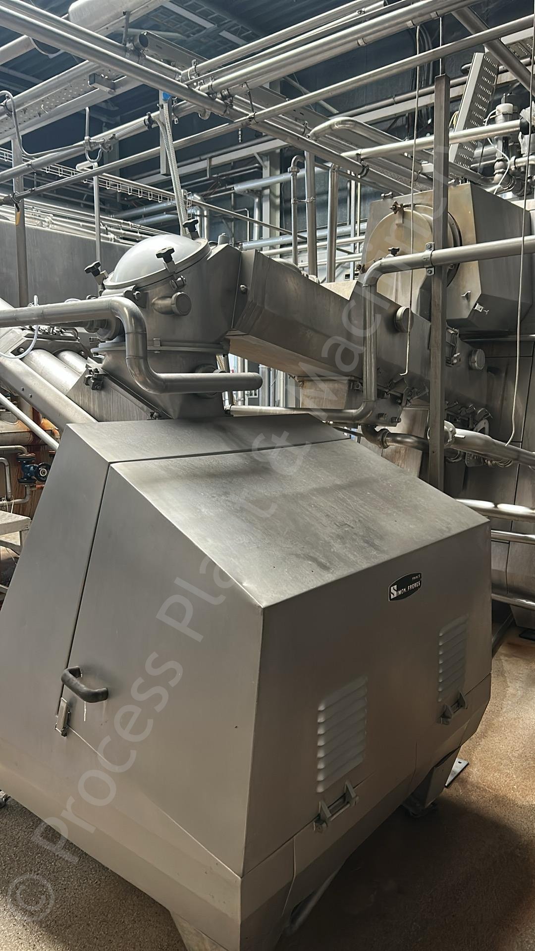This is a Used 2,000 to 2,500kg/hour Simon Freres MD1119 C Continuous Butter Churn, which includes an Automated Control Panel, 2,000kg Butter Silo, Pumps & Heat Exchanger, soon to arrive into stock at Lockerbie, Scotland, available for sale.