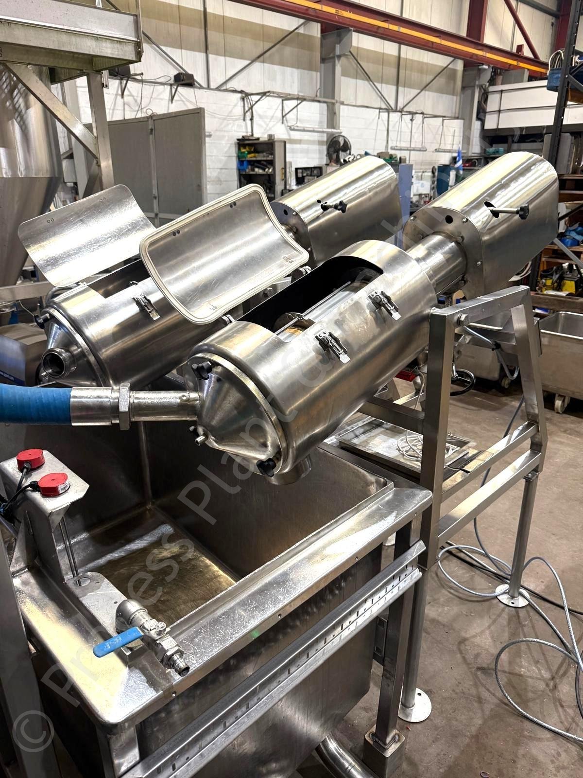 This is a Used Russell 16900 Rotary Sieve Cheese Curd Fines Saver System, which includes 2-off Russell 16900 Rotary Sieves, 1-off Rectangular Tank, Pump, Valves, Filters, Pipework & Start/Stop Panels, previously part of a Complete Cheese Production Plant at a Dairy Facility in the UK, held in stock at our facility in Lockerbie, Scotland and available for Immediate Sale.