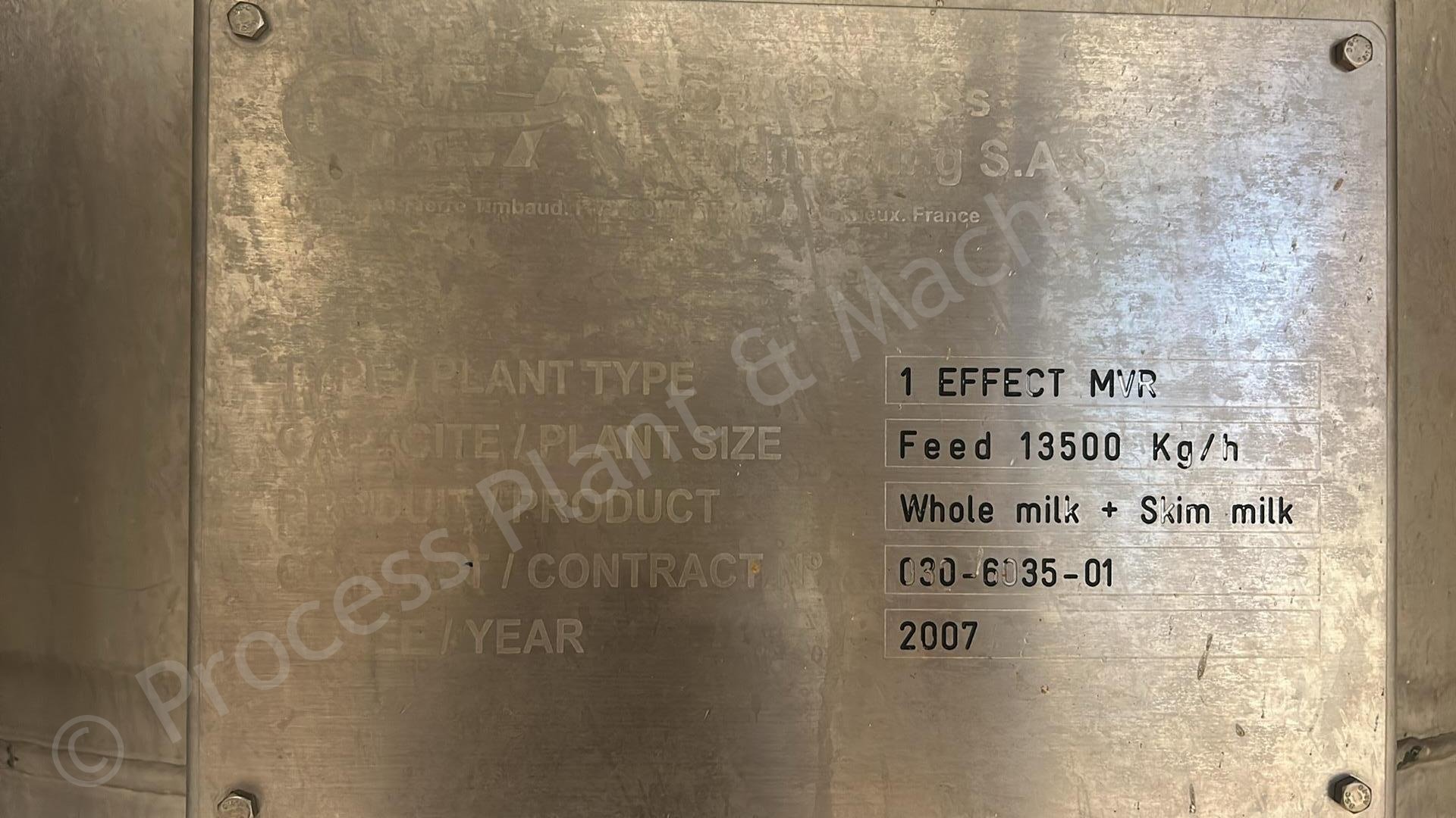 This is a Used approx. 13,500kg/hour GEA Single Effect MVR Evaporator, soon to be de-commissioned and available for immediate sale.