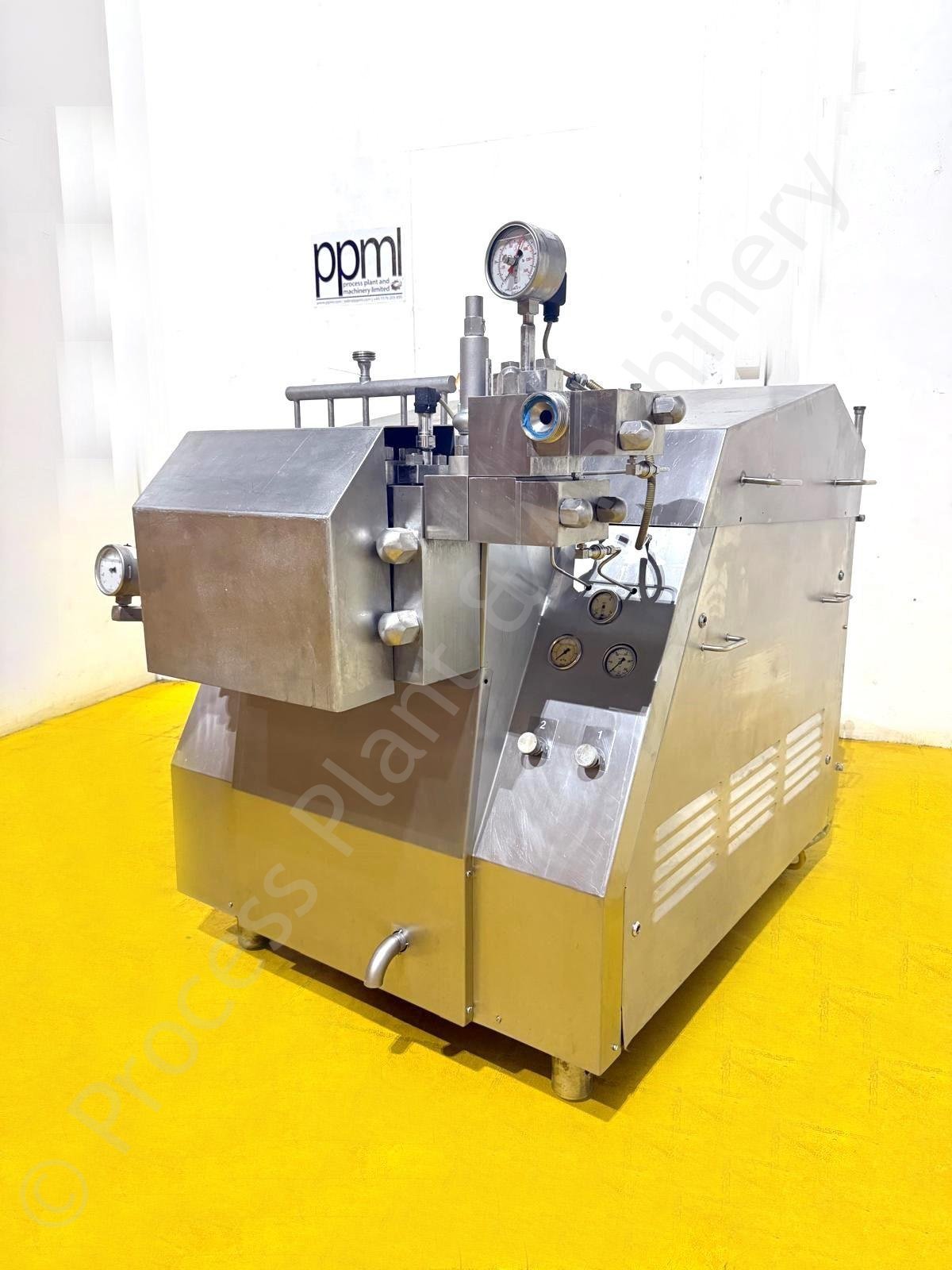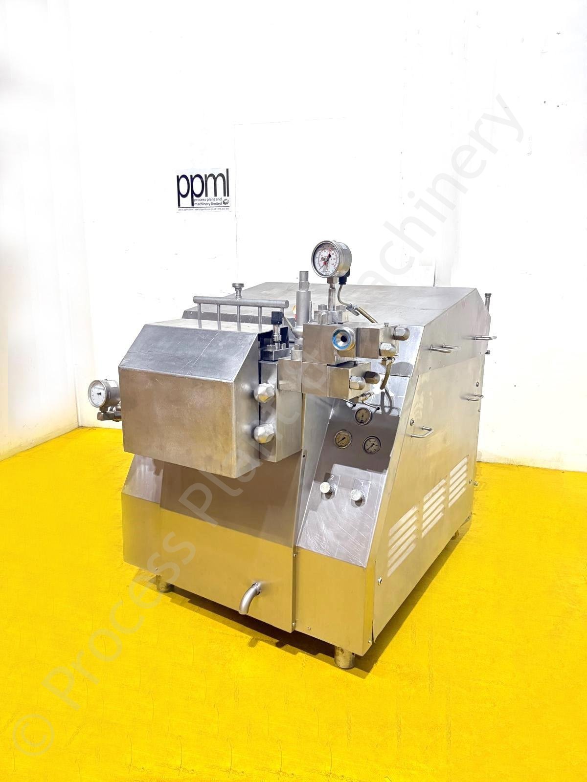 This is a Used approx. 4,200 LPH APV Gaulin 1110 MC25-4.5TBS Homogeniser, fitted with 5x Pistons & a 55kw Drive Motor, held in stock at Lockerbie, Scotland and Available for Immediate Sale.