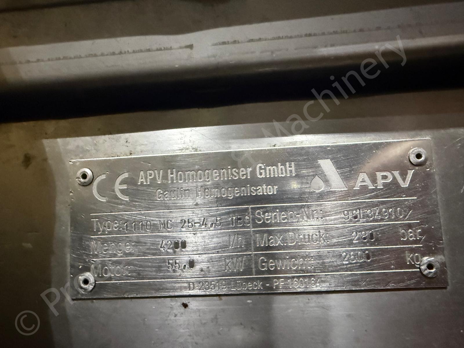 4,200 LPH APV Gaulin 1110 MC25-4.5TBS Homogeniser