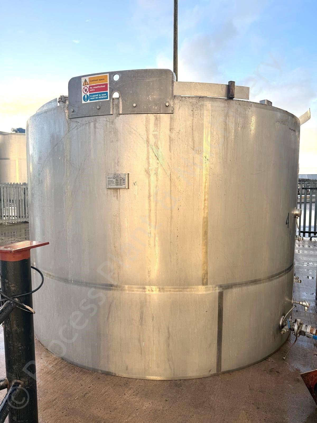 This is a Used approx. 18,000 Ltr Stainless Steel Jacketed Chocolate Tank with Full-Sweep Mixer, held in stock at Lockerbie, Scotland and Available for Immediate Sale