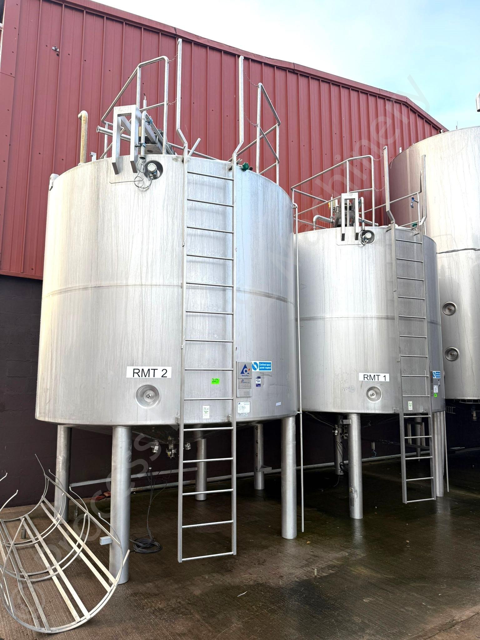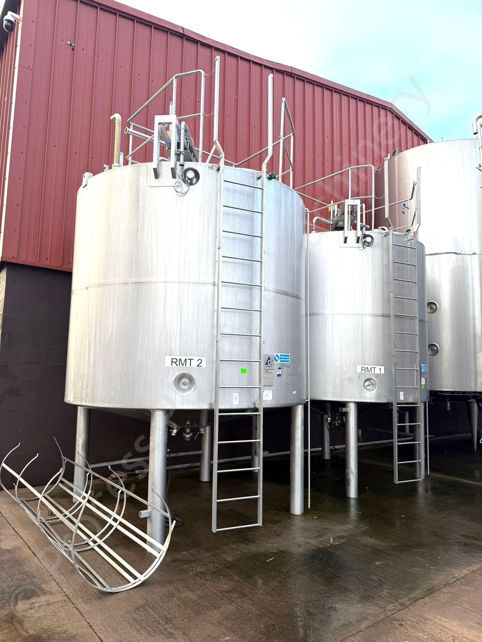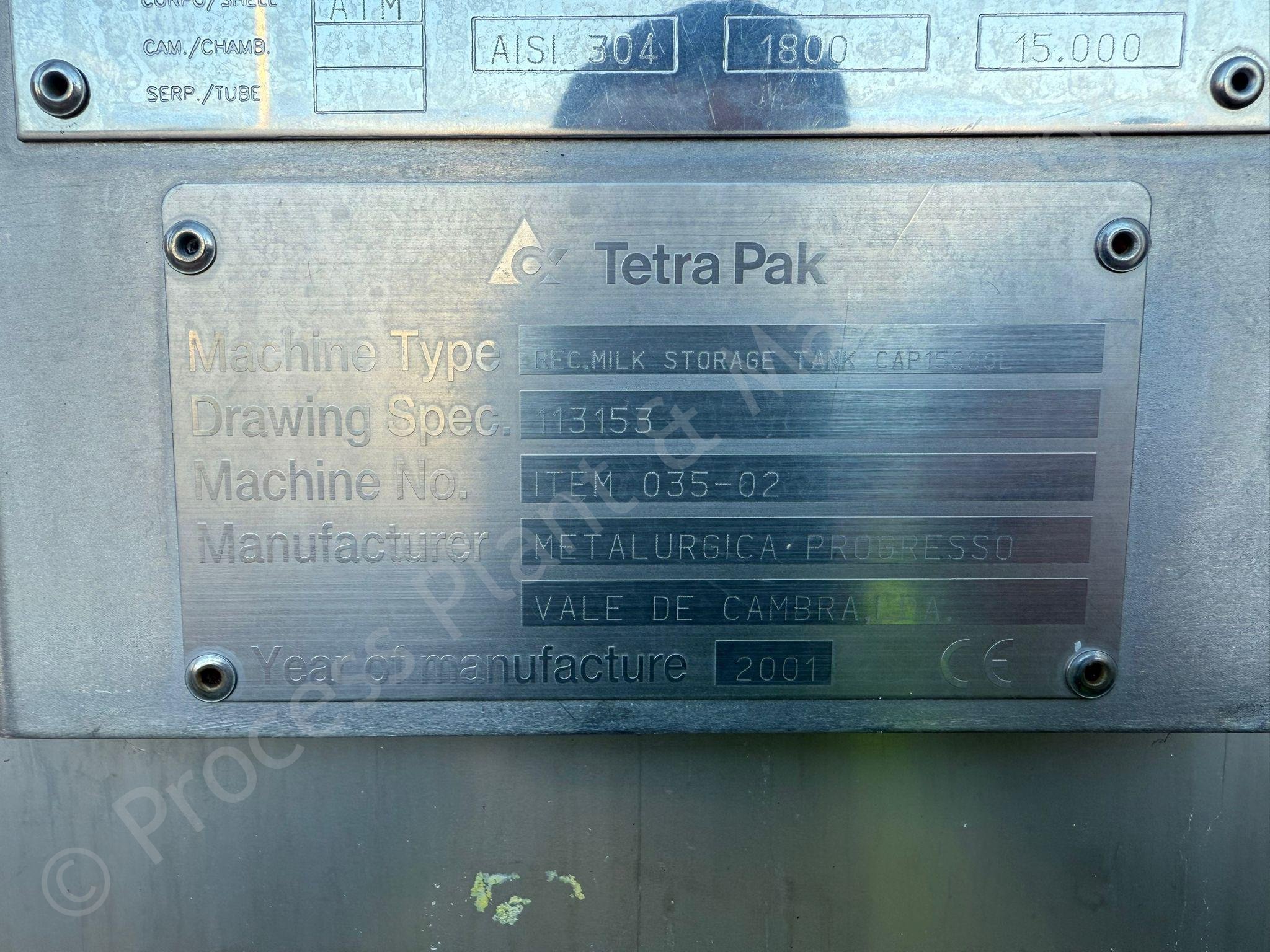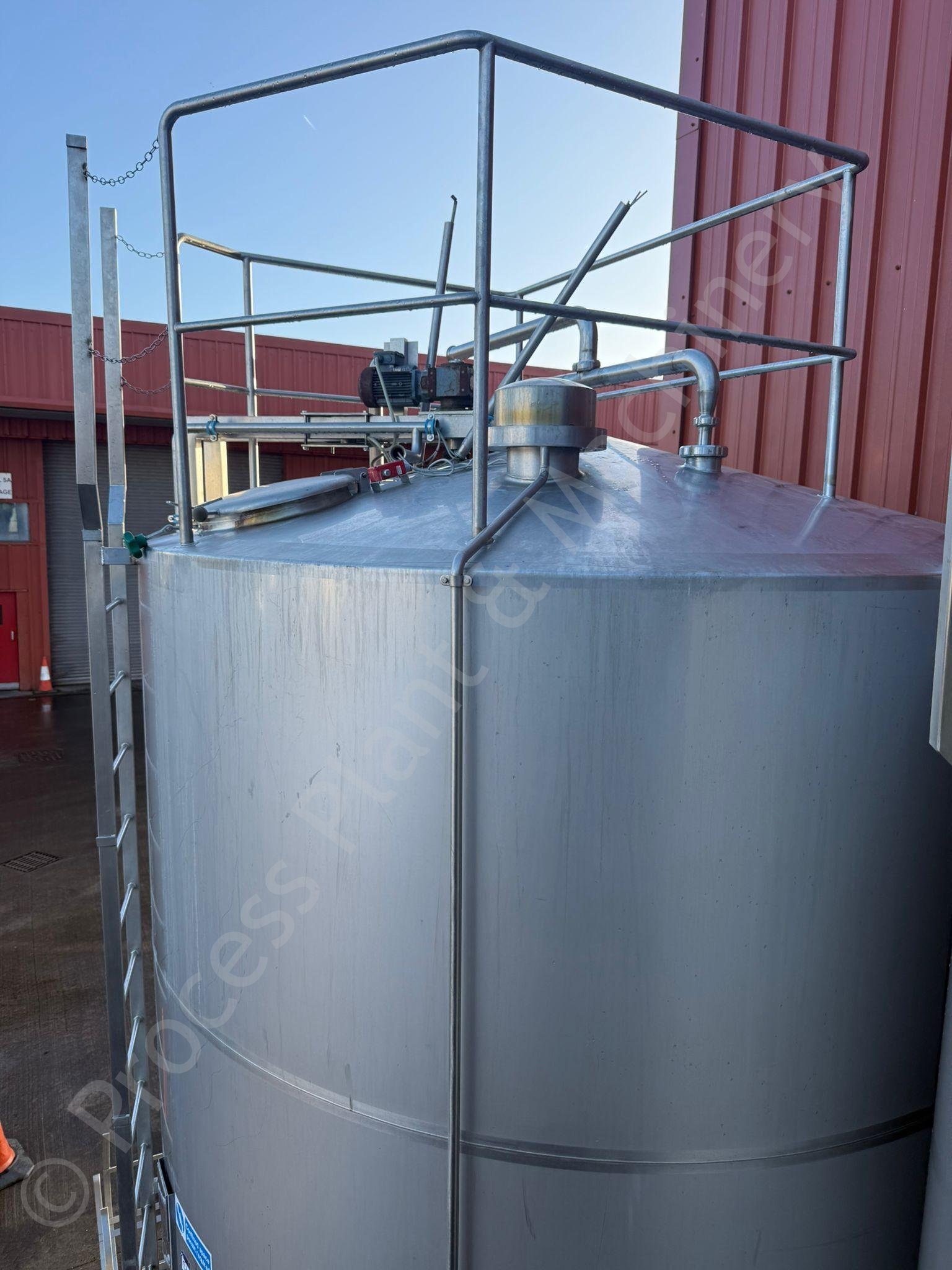 This is a Used approx. 15,000 Ltr Tetra Pak Progresso 304 Grade Stainless Steel Insulated Tank with Top-Mounted Paddle Mixer, held in stock at Lockerbie, Scotland and Available for Immediate Sale.