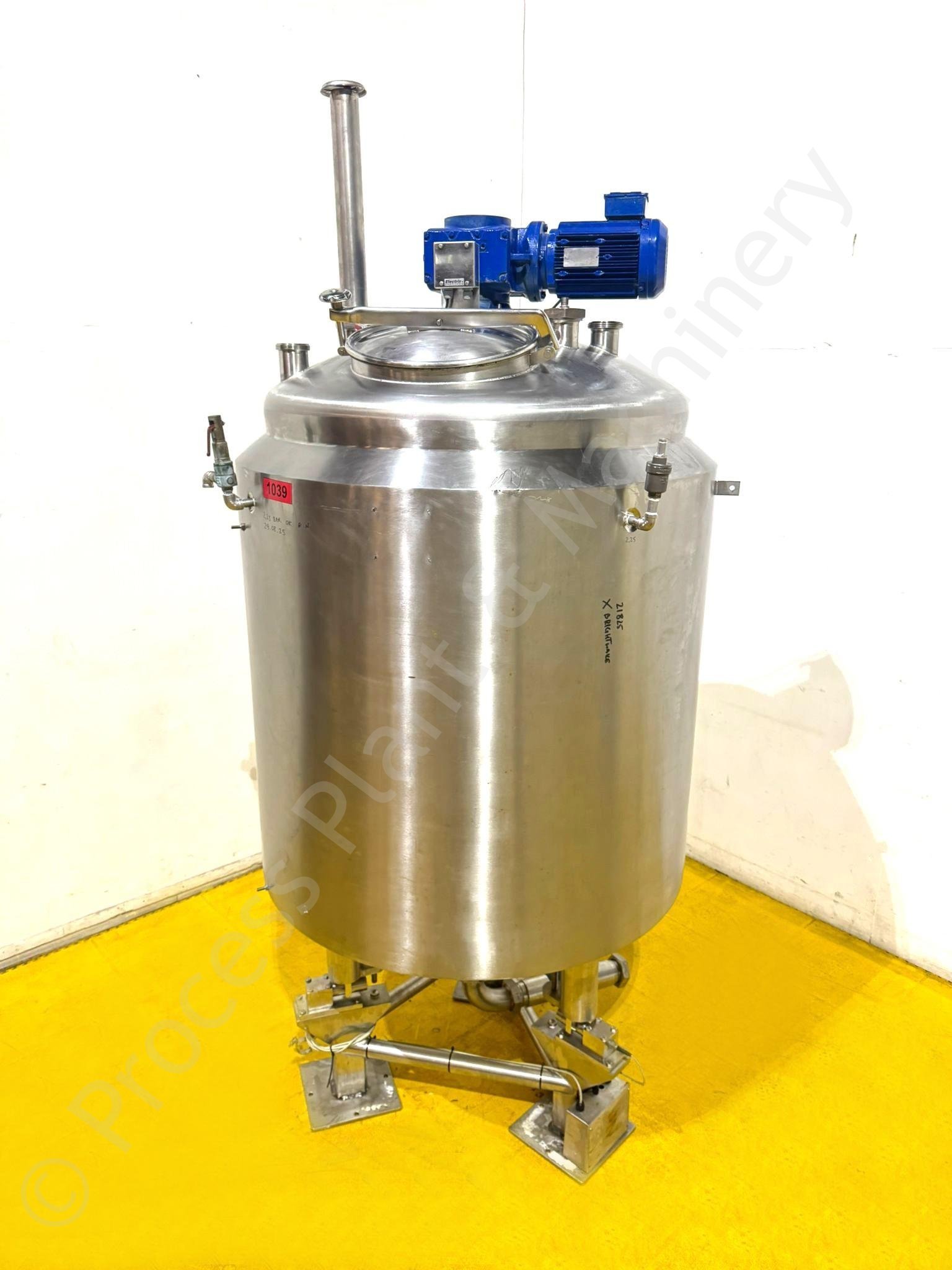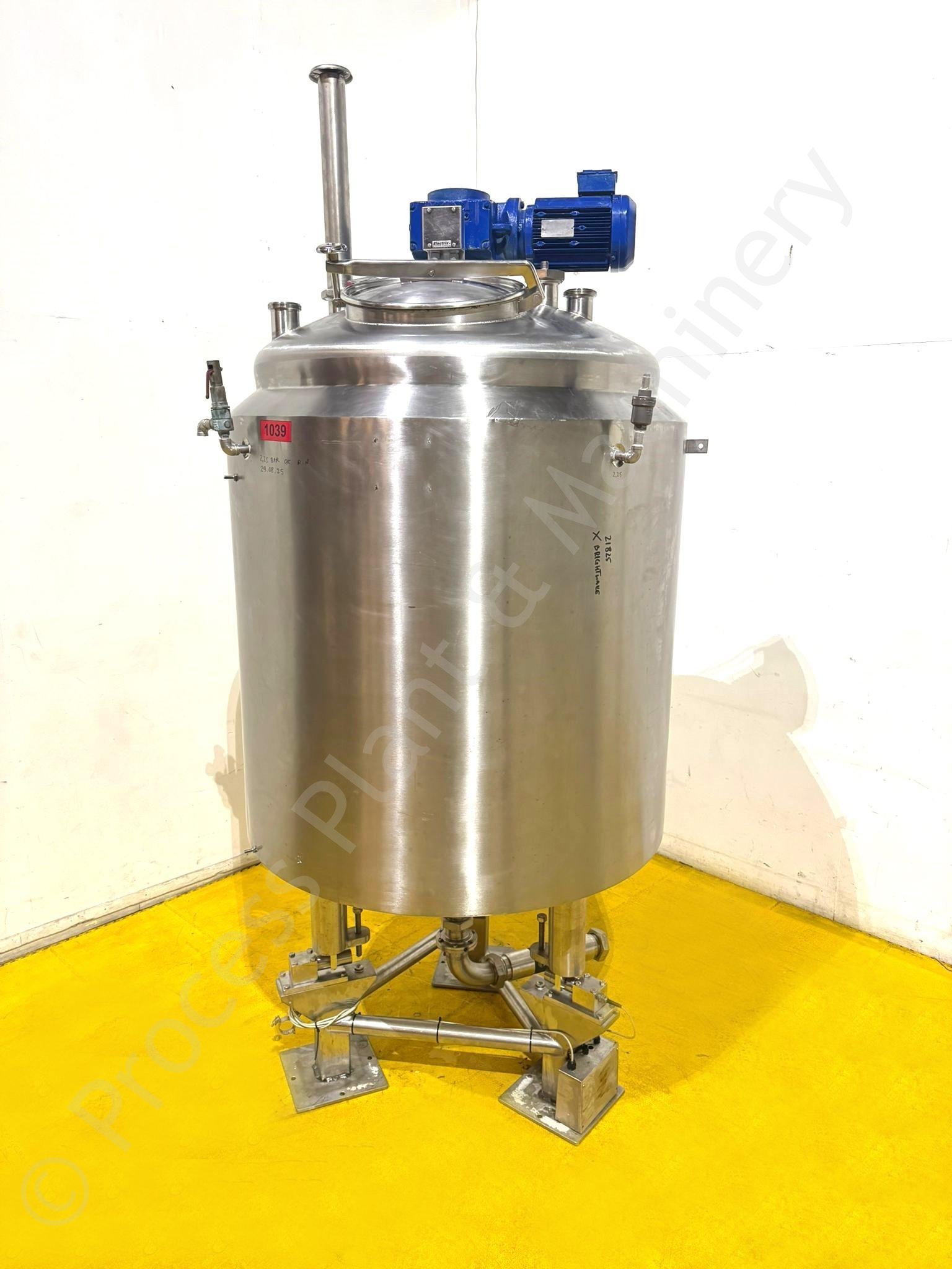 This is a Used approx. 1,000 Ltr 316 Grade SS Jacketed Tank with Full-Sweep Scraped-Surface Mixer, held in stock at Lockerbie, Scotland and Available for Immediate Sale.