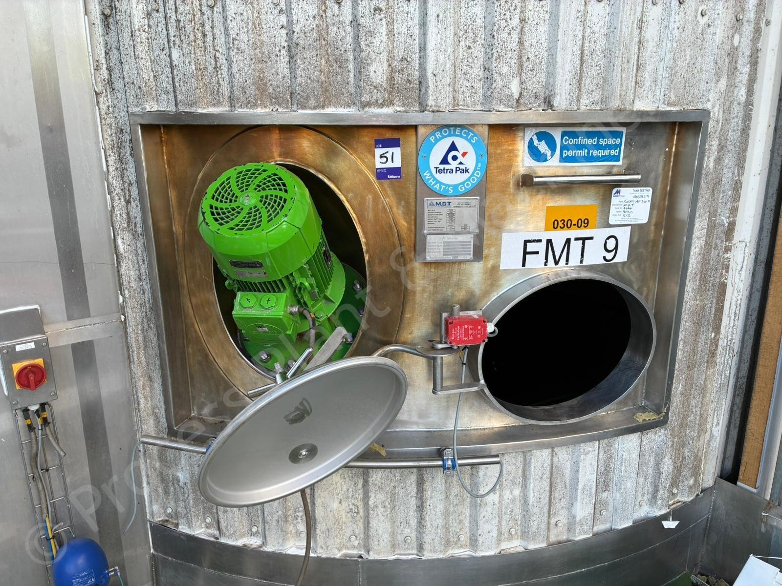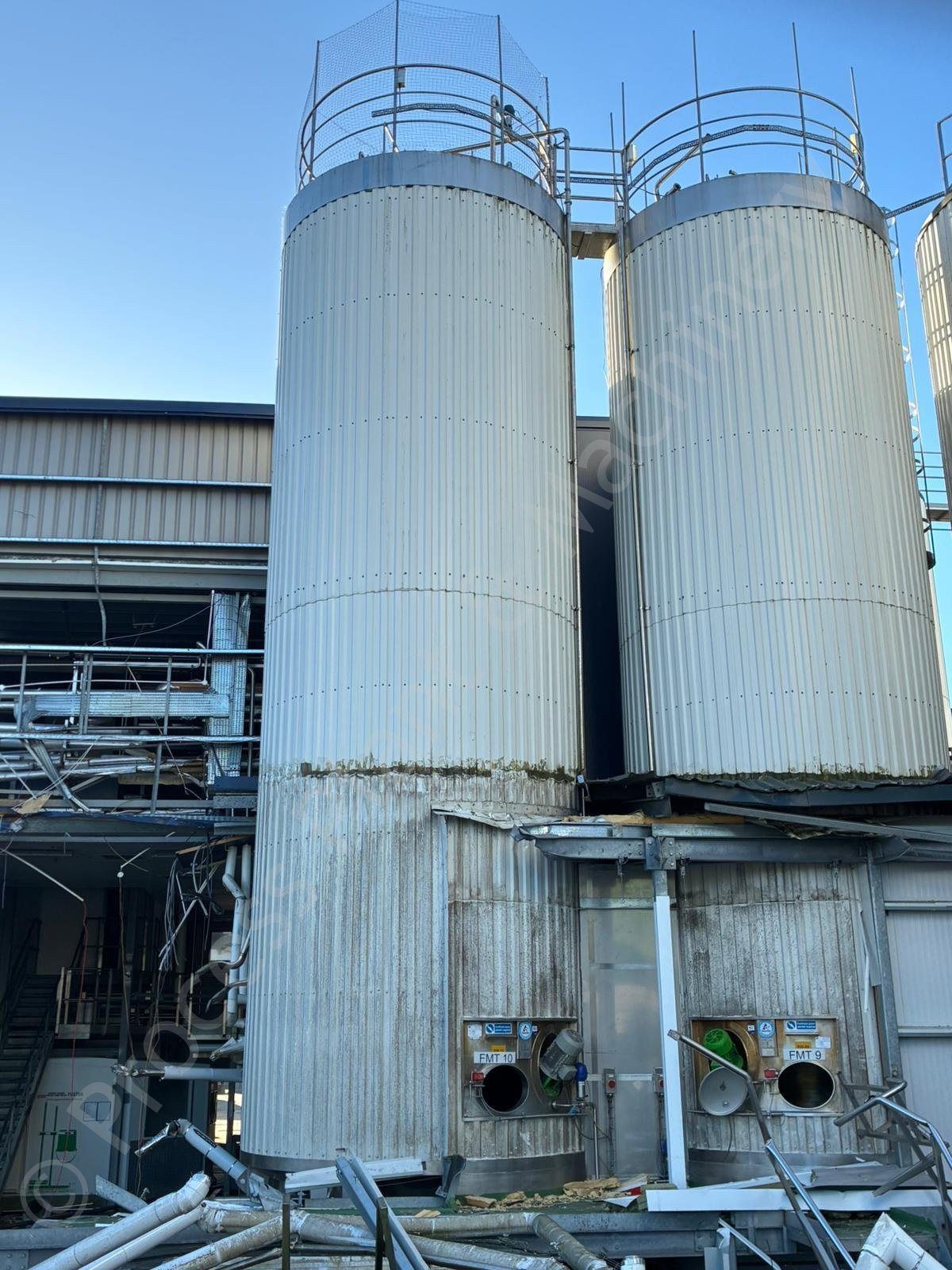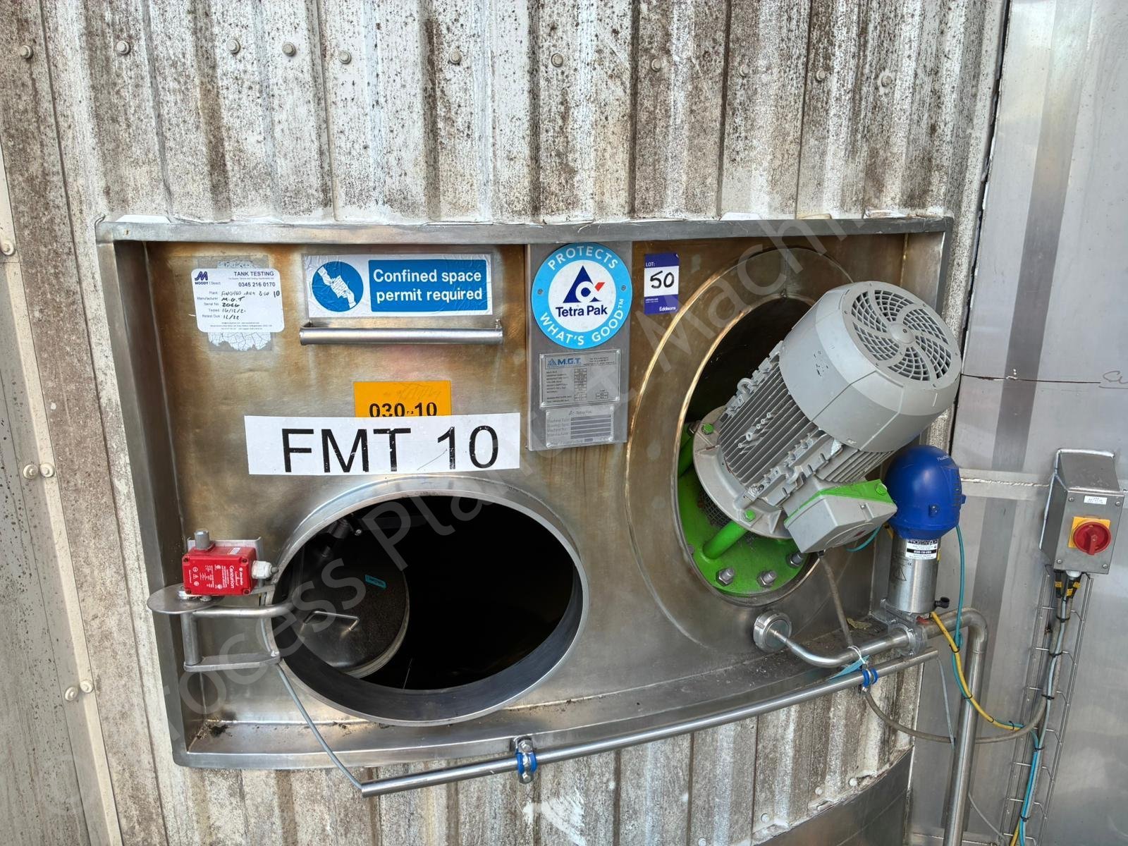 This is a Used approx. 100,000 Ltr Stainless Steel Jacketed Insulated & Clad Liquid Storage Silo, with 304 Grade Material of Construction and a Side-Entry Agitator, soon to arrive in stock at Lockerbie, Scotland, UK