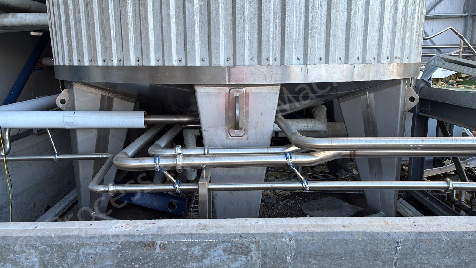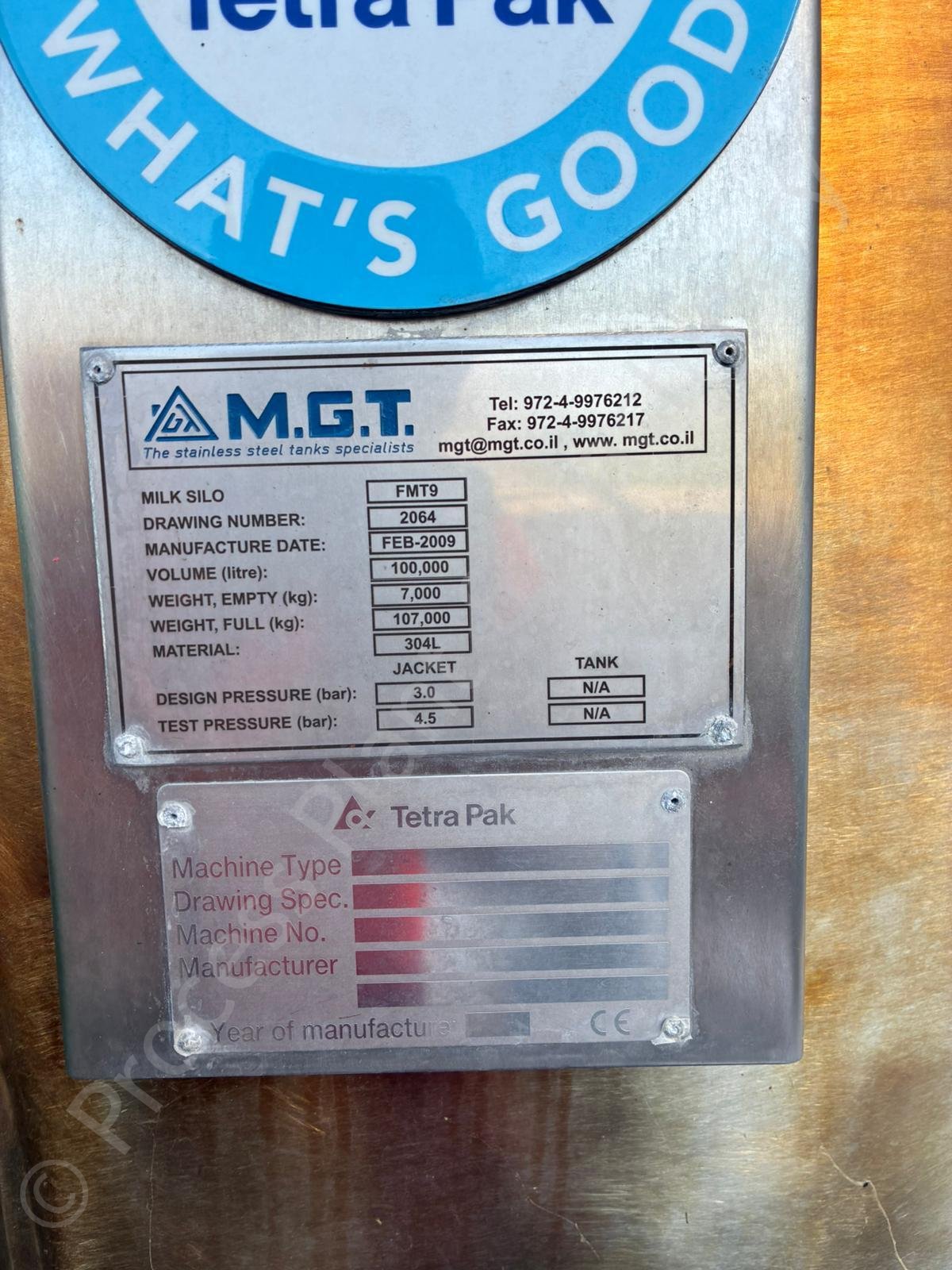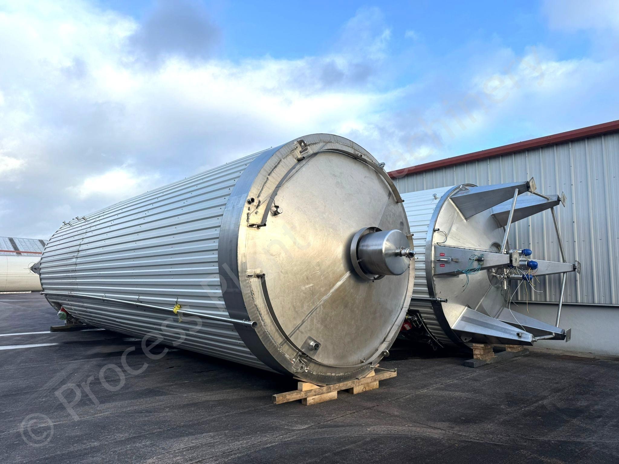 This is a Used approx. 100,000 Ltr Stainless Steel Jacketed Insulated & Clad Liquid Storage Silo, with 304 Grade Material of Construction and a Side-Entry Agitator, soon to arrive in stock at Lockerbie, Scotland, UK