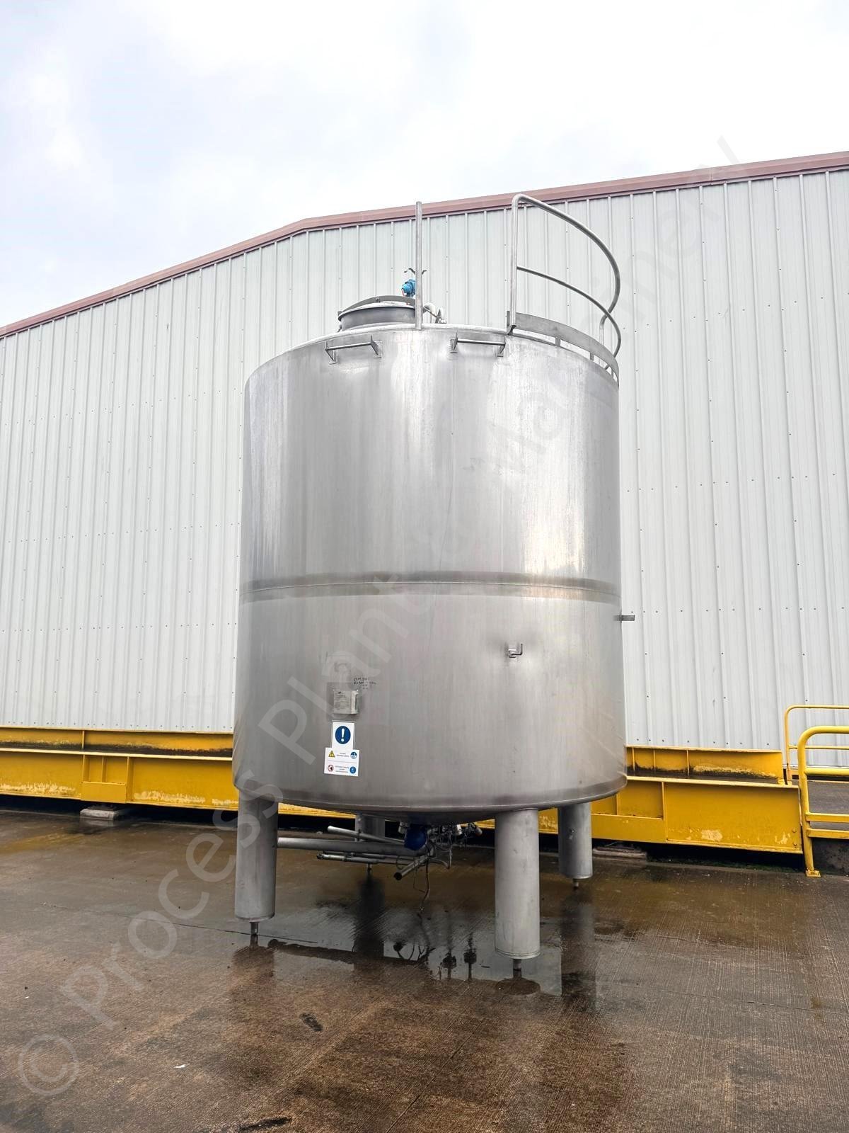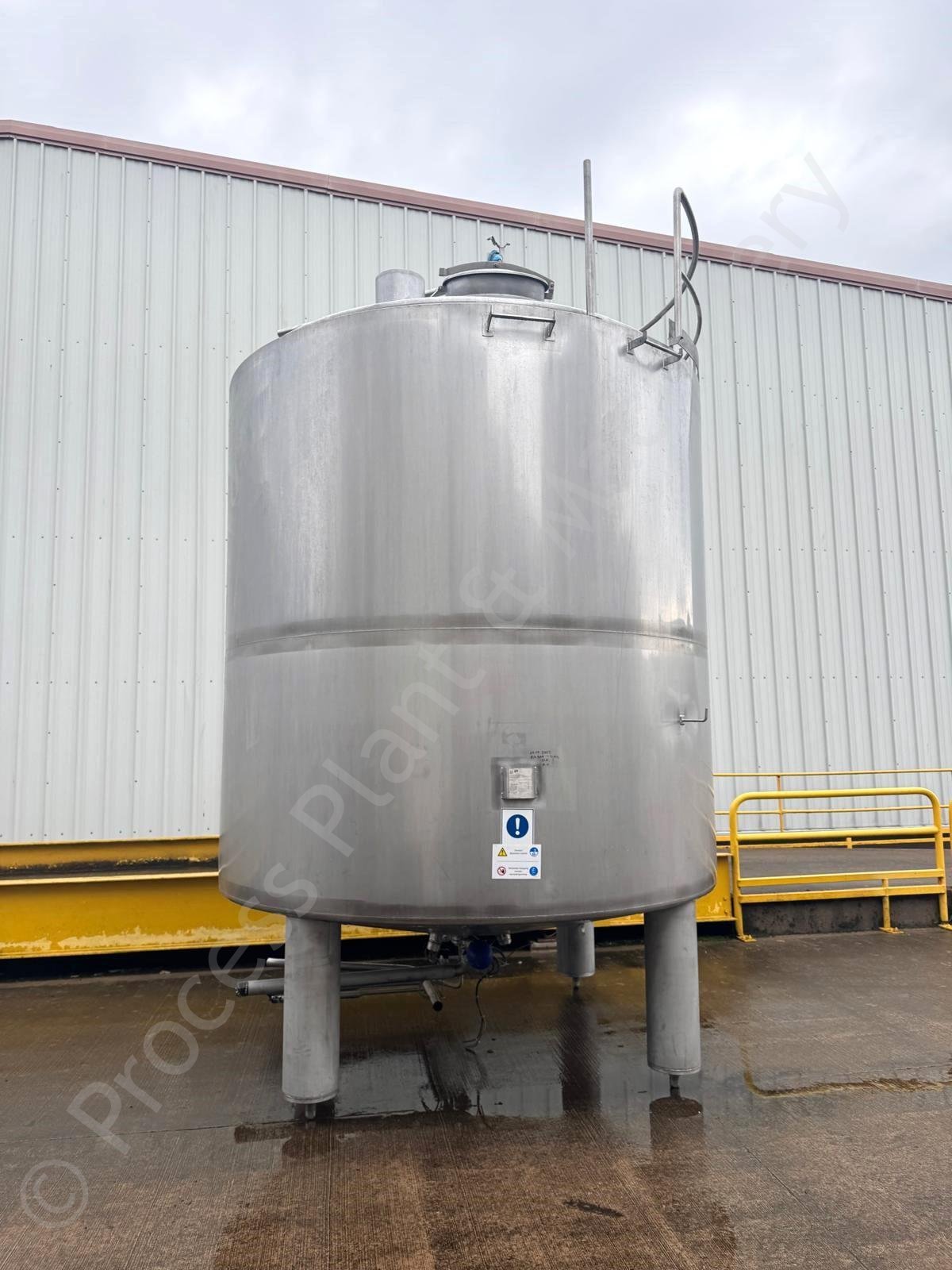 This is a Used 15,000 Ltr Stainless Steel Jacketed Tank with Top-Mounted Paddle Mixer, Year 2004, held in stock at Lockerbie, and Available for Immediate Sale
