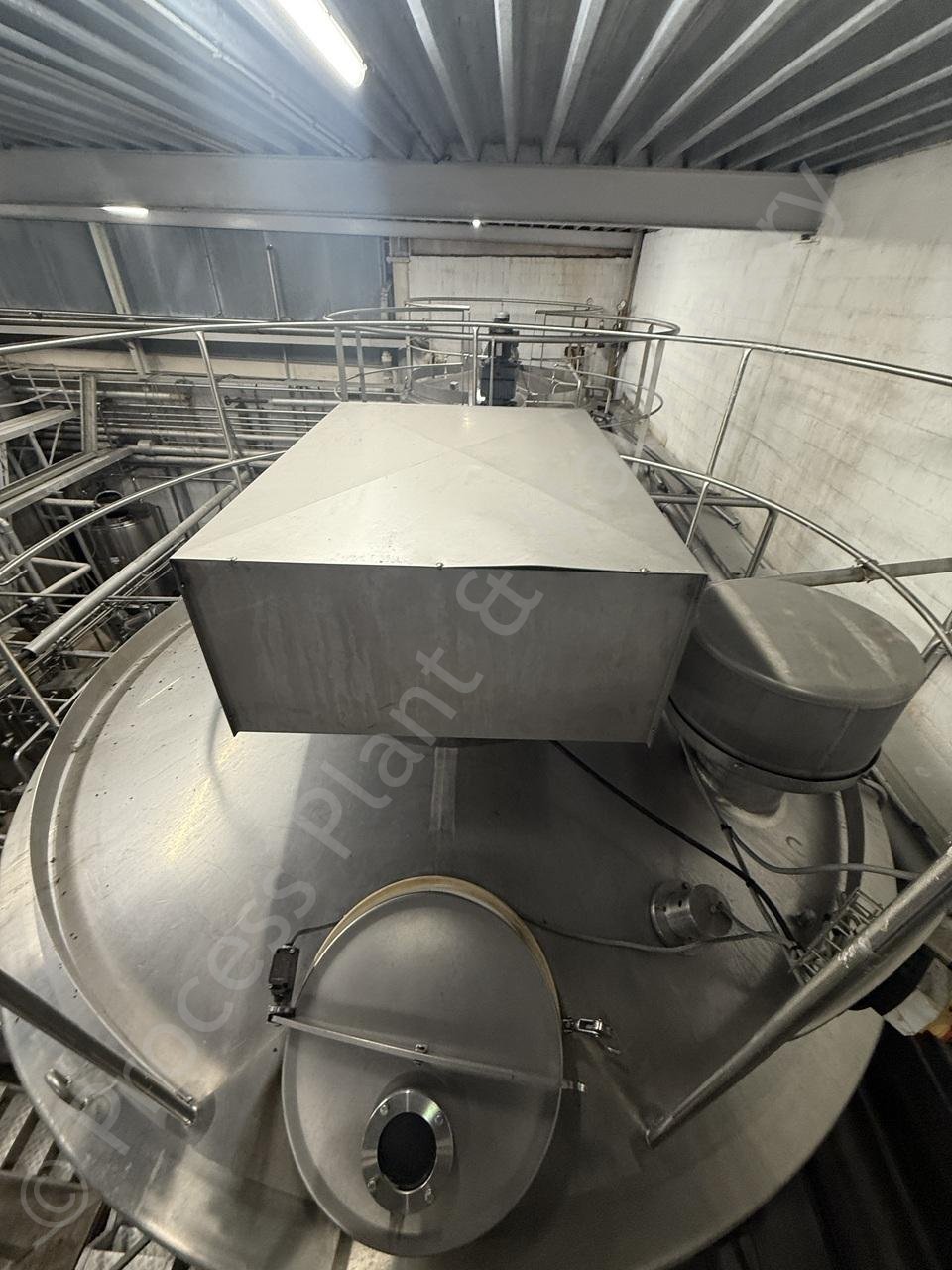 This is a Used approx. 25,000 Ltr APV Stainless Steel Jacketed Tank with Full-Sweep Gate-Type Mixer, which was Used on Butter Production at a Multi-National Dairy Facility in Europe, currently held in stock at Lockerbie, Scotland
