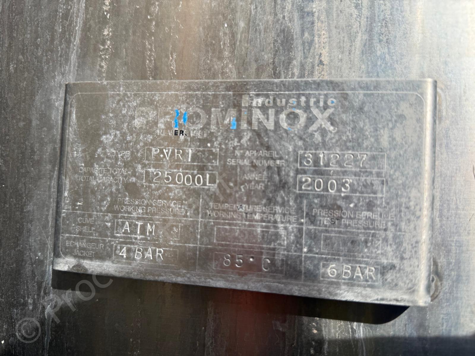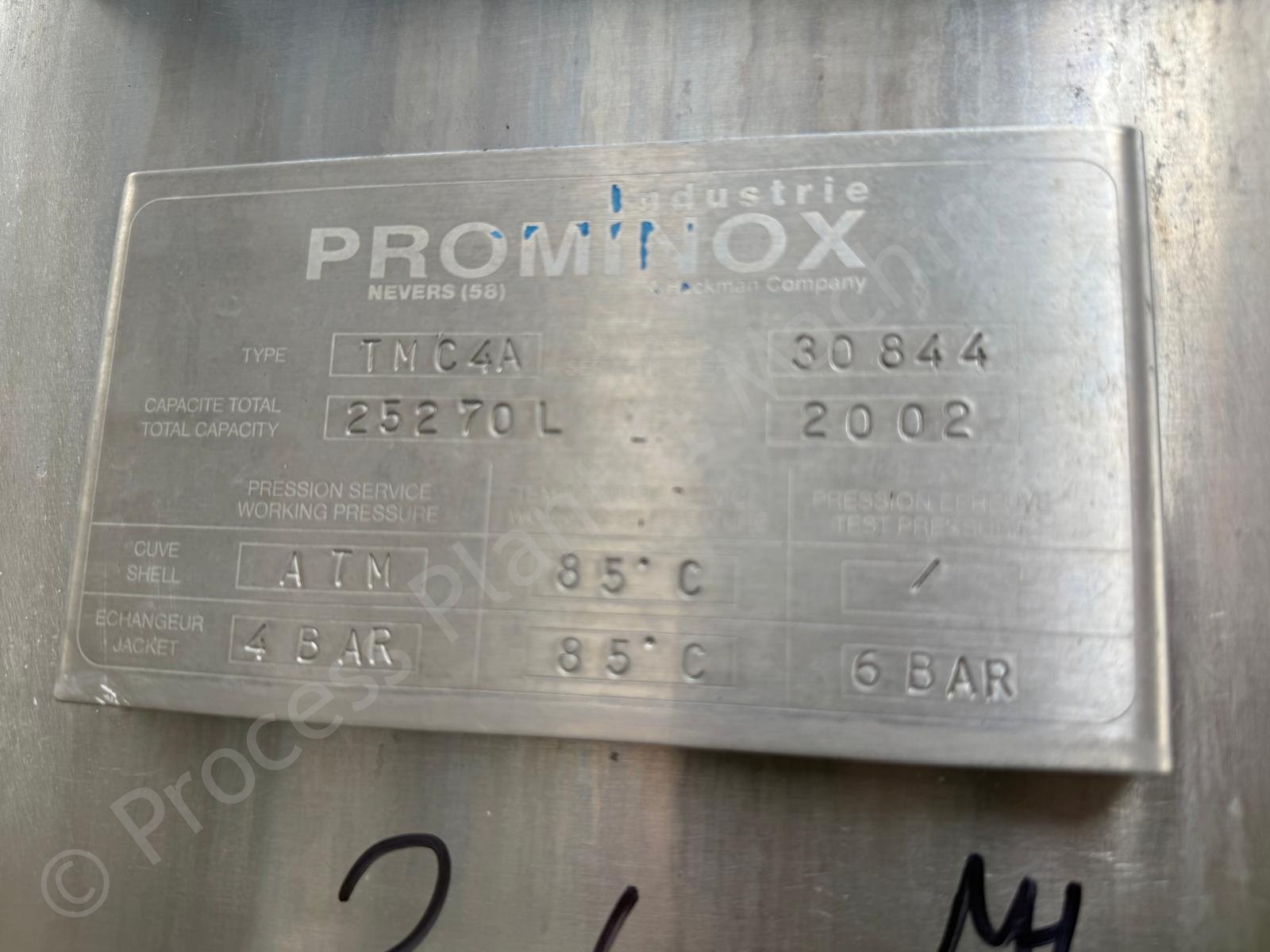 This is a Used approx. 25,000 Ltr Prominox Stainless Steel Jacketed Tank with Full-Sweep Gate-Type Mixer, which was Used on Butter Production at a Multi-National Dairy Facility in Europe, soon to arrive into stock at Lockerbie, Scotland