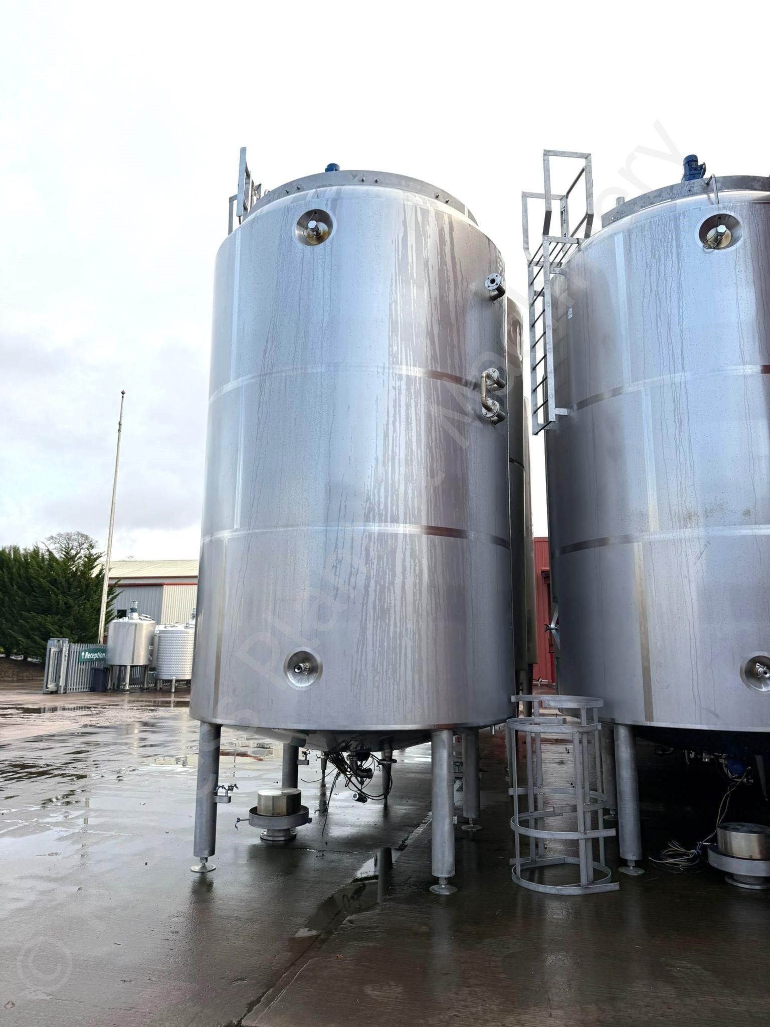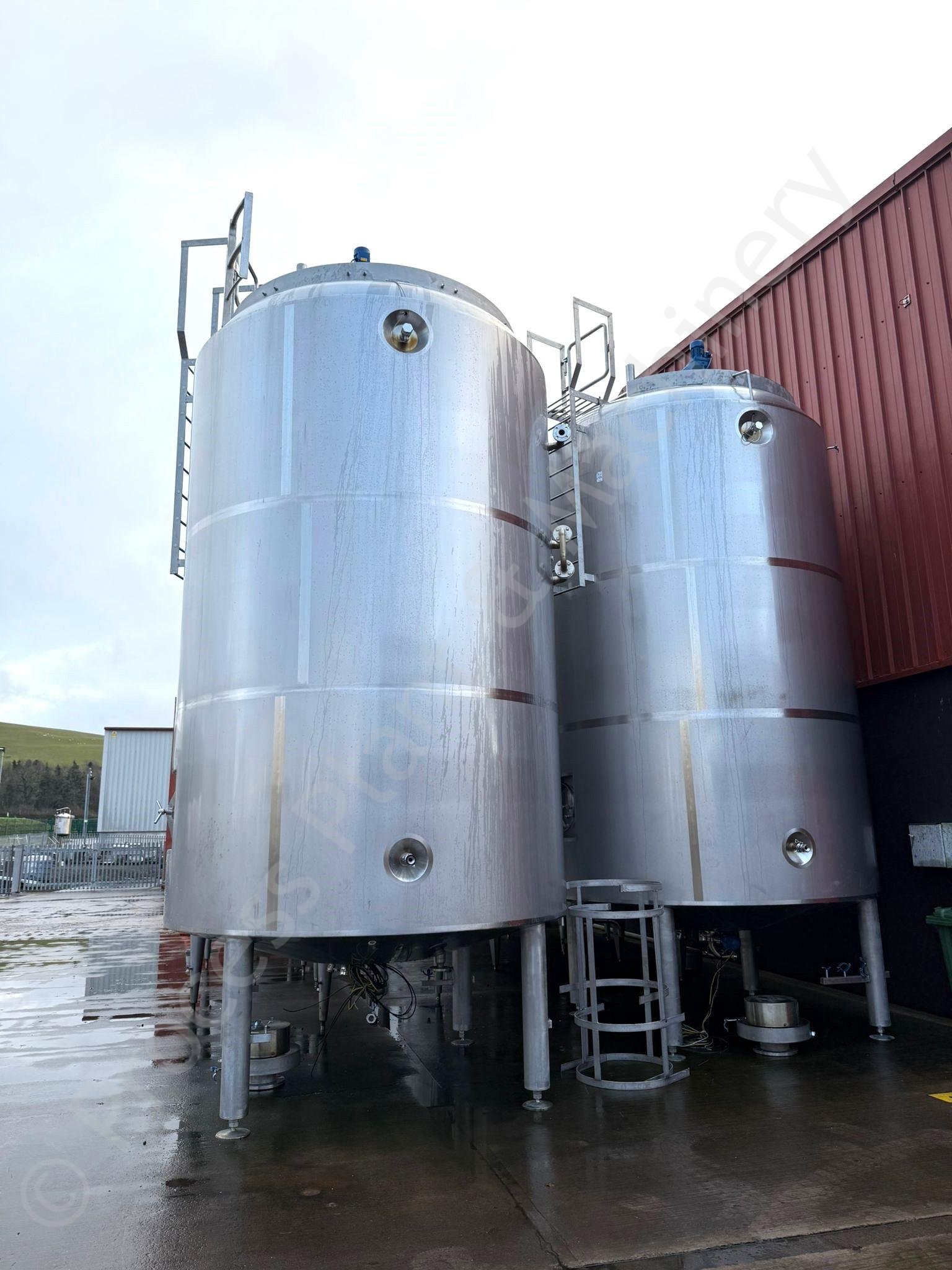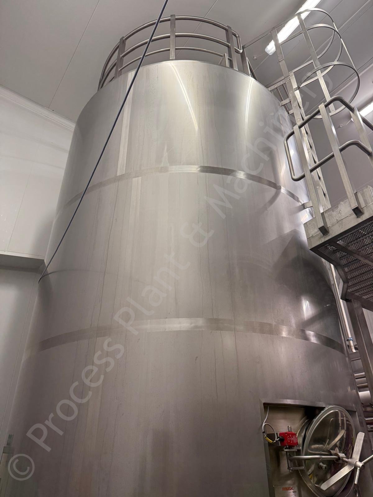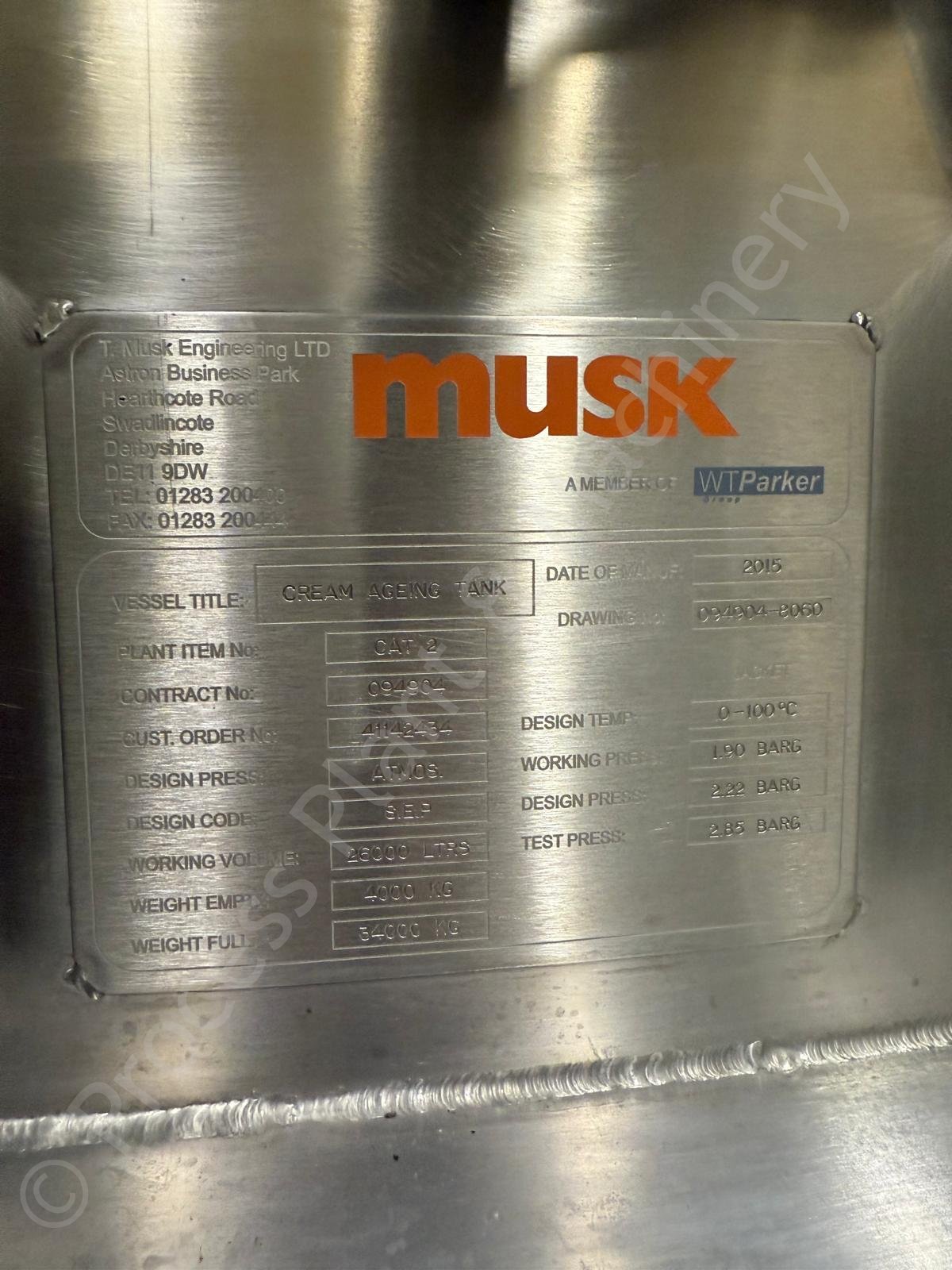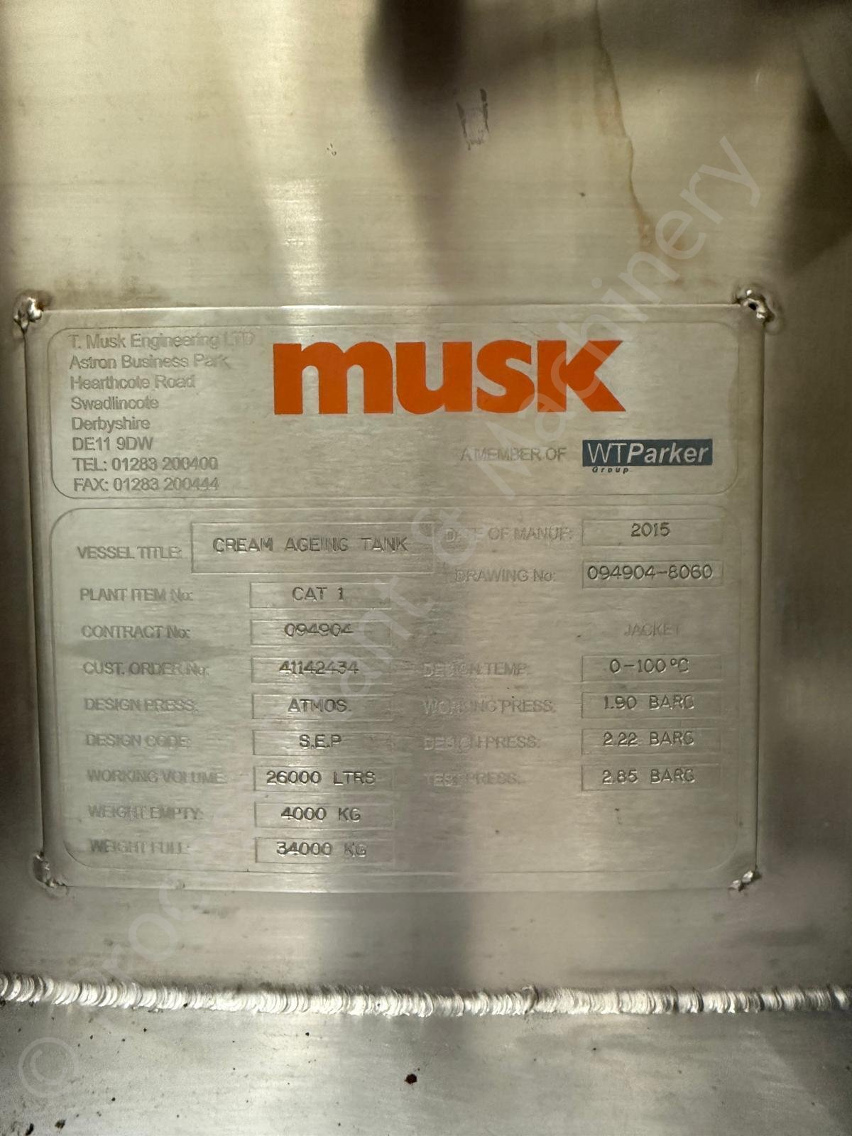 This is a Uses approx. 26,000 Ltr Musk Stainless Steel Jacketed Cream Ageing Tank, Year 2015, soon to arrive into stock at Lockerbie, Scotland