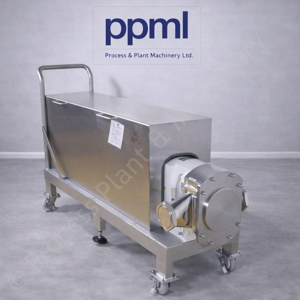 18.5kw 4 inch MAL Pumps Stainless Steel Positive Lobe Pump on Mobile Trolley This is a 18.5kw 4 inch MAL Pumps Stainless Steel Positive Lobe Pump on Mobile Trolley with Never Used Pump Head and which has a Max. Throughout of ~36,000 LPH (on water), currently held in stock at Lockerbie, Scotland. This Pump's capacity of ~36.000 LPH was when tested on a 2" pipeline and on a 4" pipeline it could potentially have more throughput (Capacity).