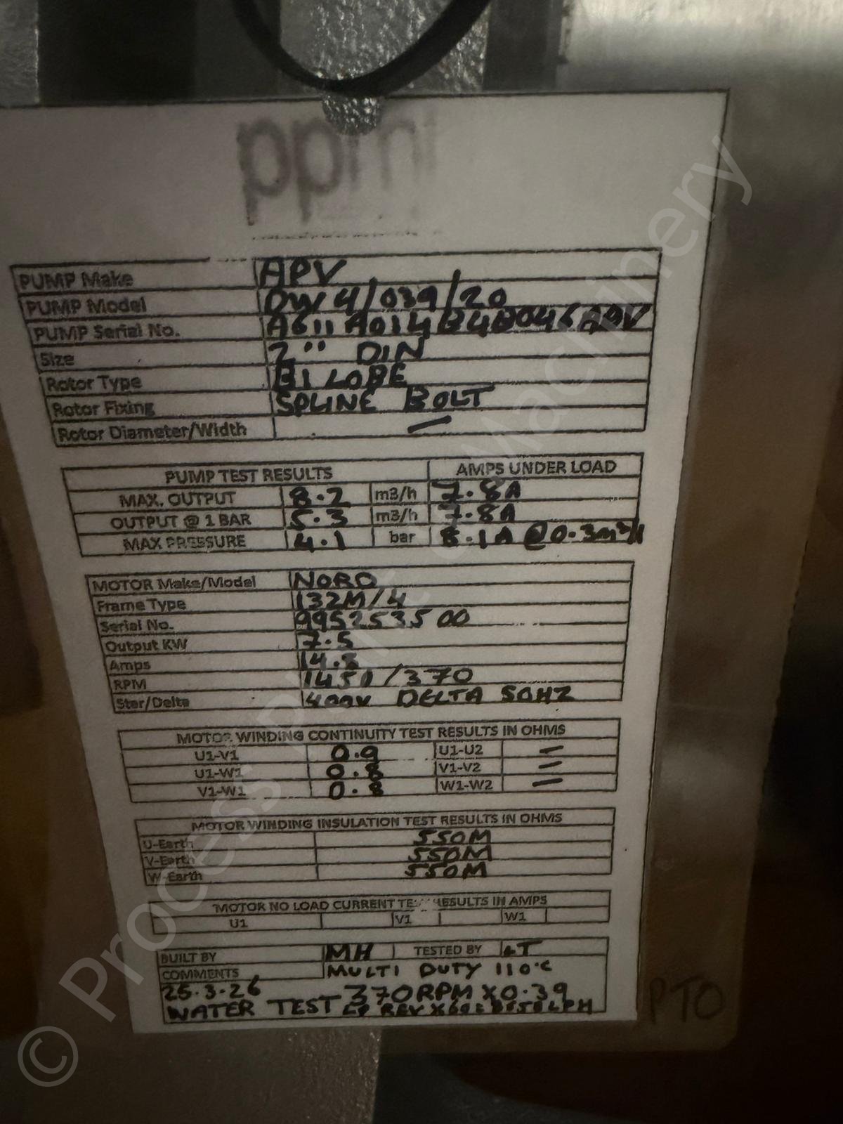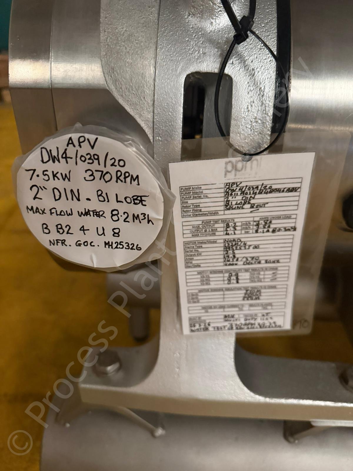 This is a Used / Overhauled 7.5kw 2 inch APV DW4 039 20 Positive Lobe Pump which has a Max. Rated Flow of approx. 8550 LPH (tested on water), held in stock at Lockerbie, Scotland and Available for Immediate Sale.