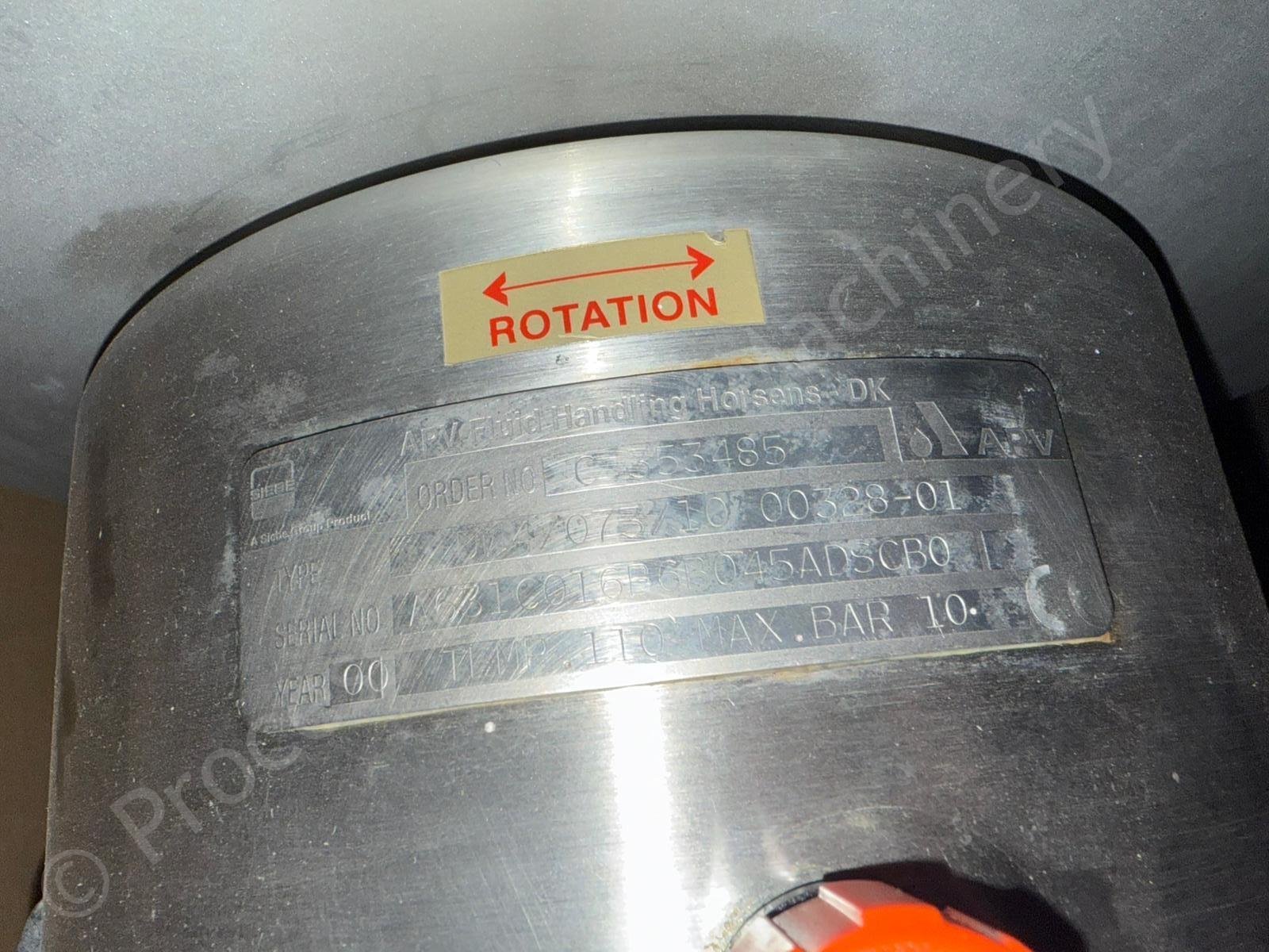 This is a Used 7.5kw 3 inch APV DW4 073 10 Positive Lobe Pump which has a Gearbox Speed of 201 RPM, held in stock at Lockerbie, Scotland and Available for Immediate Sale.